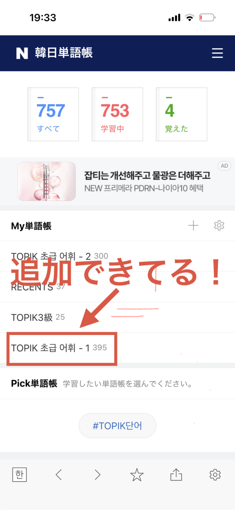 TOPIK初級語彙も単語帳に入れています。